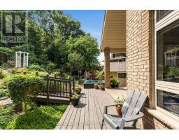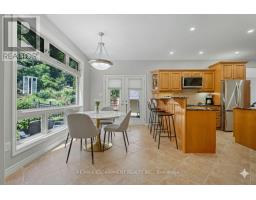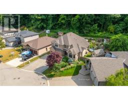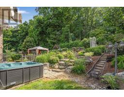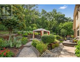 Escape the hectic pace of the modern world and step into your own private cottage retreat. Nestled gracefully beneath the Niagara Escarpment on a quiet crescent, this custom-built (2003) home sits on a premium pie-shaped lot backing onto lush, protected green space. This isn't just a backyard; it's a lifestyle. Imagine trading screen time for real-world adventures-watching your kids catch frogs by your private, multi-tiered waterfall or chase fireflies as the sun goes down. Spend your evenings soaking in the hot tub, letting the stresses of the day melt away to the tranquil sounds of trickling water and a gentle symphony of cicadas and grasshoppers. It is a true piece of calm in a busy world. Inside, that connection to nature continues. Oversized windows flood the meticulously maintained 4+1 bedroom home with natural light, complementing the soaring ceilings and elegant rounded corners. The freshly painted interior features a kitchen equipped with brand-new appliances (including a gas cooktop option) protected by a 4-year warranty, plus reverse osmosis water at every sink. When it's time to unwind, the spacious primary suite serves as the ultimate sanctuary, featuring a two-sided gas fireplace shared with a luxurious, spa-like ensuite. Family living is made easy with walk-in closets in every single bedroom, central vac, and two fruit cellars. The fully finished basement offers fantastic in-law or income potential, boasting rare 9-foot ceilings, a separate entrance, and a roughed-in kitchen. Complete with an oversized exposed aggregate driveway parking six cars, this move-in-ready home perfectly balances the tranquility of nature with modern luxury. (id:47351)