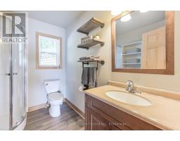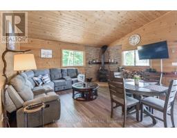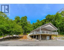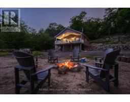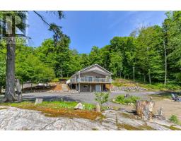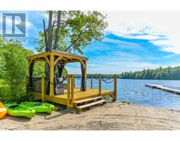 Welcome to Bloor Lake House, a fully renovated lakefront retreat, offering the same natural beauty and lifestyle the Muskoka area is known for with added privacy and tranquility. Set on 3.3 acres, with private tree lined laneway with gated secure entrance and ample parking, this property was completely renovated four years ago and combines modern systems with classic cottage character. The main cottage features open-concept living with vaulted pine ceilings, updated wood finishes, wood stove, large covered front porch with full lake view, and a bright kitchen with quartz countertops, white cabinetry, gas range, and excellent counter space for cooking and serving. Sleeping accommodations include space for up to 11 people between the cottage and a separate heated bunkie, making it ideal for families and guests.The property is situated on a private lake shared by only four cottages, with no public access, and the views are open and expansive. Outside you'll find expansive perennial gardens, lakeside firepit, enclosed wood storage, and lockable ATV or gardening storage. The waterfront includes a lakeside screened in gazebo with seating, private dock and swim platform, and a gradual entry sandy beach which allows for motor boat launch and opportunities for swimming, canoeing, kayaking, and excellent fishing for small and largemouth bass, sunfish, and crappie. A nearby waterfall offers portage access into the lower Crane Lake, adding to the recreational appeal. Recent upgrades include a wrapped foundation, solar power with lithium batteries, and a whole-home propane generator, ensuring efficient and reliable service in all seasons.This rare offering provides the best of both worlds Muskoka-area charm and amenities with enhanced seclusion. With 3.3 acres of land, updated interiors, exceptional waterfront, and no short-term rental restrictions in the area, this lake house is well-suited as a year-round residence, seasonal getaway, or rental investment. (id:47351)