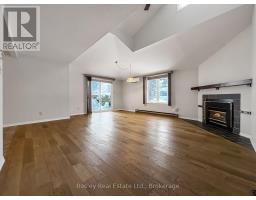 Offered for annual lease: a generously sized two-storey, 3-bedroom / 3-bathroom corner condo set in the heart of Ontario's four-season playground. This private end unit is filled with natural light and offers an exceptional layout for comfortable, long-term living. The main entry welcomes you with a functional mudroom featuring double closets. The open-concept living area is warm and inviting, featuring vaulted ceilings, hickory hardwood flooring, a gas fireplace, and a walkout to a private patio. A convenient two-piece powder room completes the main living space. The kitchen is thoughtfully positioned just off the living area, with laundry, pantry, and storage closets located nearby for added functionality. The oversized main-floor primary suite offers excellent privacy and includes walk-in closet, a four-piece ensuite, two large windows, and enough space to easily accommodate an additional sitting area or work from home set up. The upper level provides two additional bedrooms and a three-piece bathroom, making it well suited for family living, guests, or a dedicated home office setup. Outside, enjoy a private, hedge-enclosed patio framed by mature trees, along with an outdoor storage cupboard and one exclusive parking space directly outside the unit. Comfort is ensured year-round with multiple heat pump/AC units and a gas fireplace. Located just minutes from Collingwood amenities, Georgian Bay, ski hills, and golf courses, this well-maintained condo offers a rare opportunity to lease a spacious, private home in a prime four-season location. (id:47351)