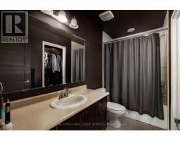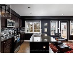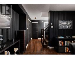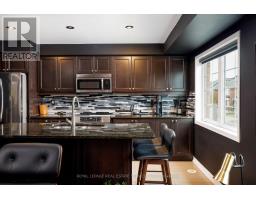 Dramatic luxury awaits in Oakville's highly sought-after Preserve community. This immaculate Mattamy-built 3-bedroom, 2.5-bathroom end-unit townhome with approximately 1,541 sq. ft. delivers contemporary elegance with upscale finishes at every turn. A brilliant blend of materials creates distinctive flair and exceptional comfort-fresh designer paint colours highlight crisp white trims, wood-slat accent walls introduce warmth and texture, and beautiful hardwood floors, designer tile selections, and a solid oak staircase with iron pickets establish a refined foundation. The flexible main floor is bright and inviting, enhanced by pot lights, stylish light fixtures, large windows, and a walkout to the deck. The living room and dining room can be arranged interchangeably to suit your lifestyle. The upgraded kitchen stands out with dark shaker-style cabinetry, granite counters, an elongated mosaic tile backsplash, a functional island with a wraparound breakfast bar, pot lights, and quality stainless steel appliances. This level also includes a chic powder room and a convenient laundry room. Upstairs, three sunlit bedrooms and two full bathrooms provide comfort for the whole family. One bedroom boasts a dramatic cathedral ceiling, while the spacious primary suite offers a private 4-piece ensuite with dark cabinetry and a relaxing soaker tub/shower combination. The ground level features an inviting foyer with a double mirrored closet, stone-look tiles, and inside access to the attached single garage with epoxy flooring-adding both durability and style. Close to the Oakville Hospital, schools, Fortino's, restaurants, the Uptown Core, and highways for commuters. Credit check & references. Prefer No pets. & No smokers. (id:47351)