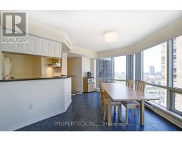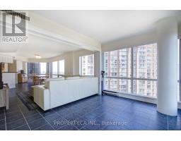 Welcome to 1001 Bay Condo! This is not your typical 2-bed, 2-bath condo. This expansive corner suite offers over 1,127 square feet of thoughtfully designed living space, wrapped in iconic city views and flooded with natural light through wall-to-wall, floor-to-ceiling windows. The open-concept living area is both functional and inviting, with ample room to comfortably accommodate a full dining table, a generous living room setup, and a perfectly positioned home office tucked beside the windows-ideal for enjoying the skyline while you work. The bedrooms are thoughtfully set apart down a private hallway, creating a quiet and restful retreat. The primary bedroom features double mirrored closets and a 4-piece ensuite, while the second bedroom enjoys convenient access to a newly renovated 3-piece bathroom just outside the door, perfect for guests or shared living. The flooring in the hallway and bedrooms will be replaced with new vinyl flooring prior to March 15, 2026. (id:47351)
