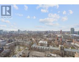 Bright 2-bedroom suite at the iconic U Condo in prime downtown location. Functional layout, featuring 9 ft ceilings and wood flooring throughout. Backsplash and large countertop in the kitchen w/ integrated appliances. Walk out to a spacious balcony. Enjoy stunning, unobstructed views of the U of T campus, downtown skyline, and CN Tower. Steps to U of T, Queens Park, subway, shopping, and dining. Building amenities include: concierge, fitness centre, sauna, party room, rooftop terrace and garden, and more. (id:47351)