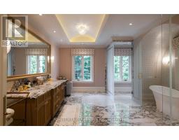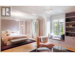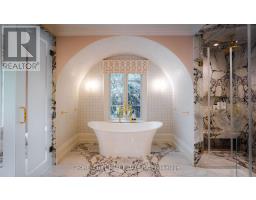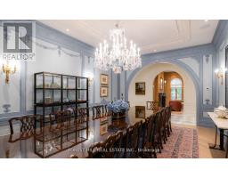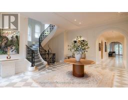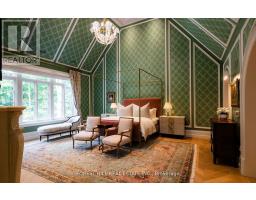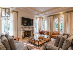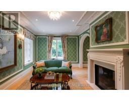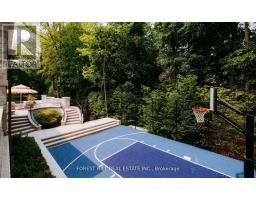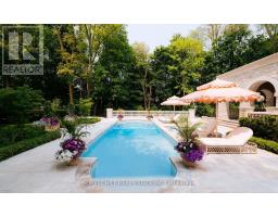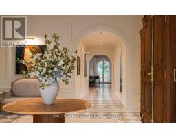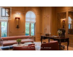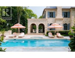 Welcome to 221 Forest Hill Road, an architectural triumph with nearly 13,000 sq ft of living space on a private 17,000 sq ft lot, nestled along the Beltline Trail in the heart of one of Toronto's most exclusive enclaves. This estate represents the pinnacle of bespoke luxury, meticulously brought to life by the city's finest: JTF Homes, Lorne Rose Architect, and Dvira Interiors. Clad in hand-selected limestone and inspired by the romance of the French countryside, the residence evokes the timeless elegance of a Provencal chateau. Arched windows with weathered-blue shutters, a stately turret, and a gracefully symmetrical facade create a striking first impression. A dramatic arcaded loggia opens onto manicured grounds and landscaping imagined by Fitzgerald and Roderick, featuring a lap pool, sports court, and lavish gardens that offer privacy and tranquility. The interiors are nothing short of breathtaking curated blend of old-world grandeur and modern refinement. The main level features soaring ceilings and a dramatic spiral staircase. Chevron-patterned white oak floors, arched passages, imported wallpaper, and tailored lighting reflect impeccable attention to detail. The formal dining room (seating 20) flows effortlessly into a statement kitchen adorned with hand-painted Portuguese tiles and custom cabinetry by Emanuele Furniture Design. The sunlit family room is anchored by a hand-carved fireplace and opens onto the gardens through elegant French doors. The crown jewel is the primary suite, a true sanctuary with vaulted ceilings, whimsical wallpaper, arched detailing, and a fireside lounge that creates a retreat-like atmosphere. The piece de resistance: a couture-inspired, two-storey dressing room with a spiral staircase and chandelier, paired with a spa-like ensuite clad in expansive stone and Shirley Wagner fixtures. The lower level features a sprawling rec room, games lounge, prep kitchen, gym, cedar sauna, and a home theatre for the ultimate cinematic escape. (id:47351)