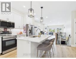 Semi-detached home by Candue Homes offering main-level living, single-car garage, and finished basement. Covered front porch entry leads to a bright, open-concept kitchen, dining, and living area. Kitchen features quartz countertops, island with bar seating, pantry, and appliances. Living room includes a fireplace and patio door walkout to a rear deck, ideal for outdoor entertaining-overlooking a fully fenced backyard with a 12' x 14' garden shed. Two bedrooms on the main level. Convenient 3-pc bath with quartz counters, laundry, and linen closet all on the same level. Vinyl flooring throughout, including the finished basement with rec room, 4-pc bath, two additional bedrooms, and good storage. Built in 2024 with Tarion Warranty. Easement is for drainage for municipality. (id:47351)