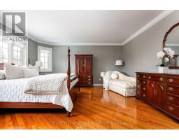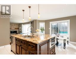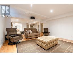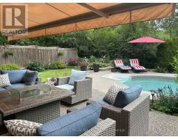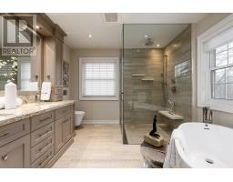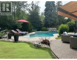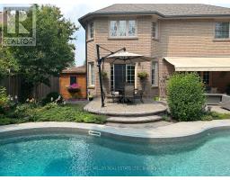 Tucked away on a quiet, family-friendly street in Oakville's prestigious Glen Abbey community, 2224 Brays Lane offers a rare blend of refined living and natural surroundings. Backing onto the protected Fourteen Mile Creeklands and steps from Langtry Park, this thoughtfully updated and exceptionally cared-for four-bedroom home delivers privacy, space, and timeless appeal. Enhanced curb appeal sets the tone with a stone façade, lush landscaping, and an exposed aggregate driveway. Inside, a dramatic two-storey foyer introduces hardwood flooring, pot lights, and an elegant Scarlett O'Hara staircase that immediately defines the home's classic character. The chef-inspired kitchen anchors the main level with a large central island, premium stainless steel appliances, walk-in pantry, and a bright breakfast area overlooking the backyard. Open to the inviting family room, a striking architectural stone feature wall and linear gas fireplace create a warm gathering space. Formal living and dining rooms add elegance, with vaulted ceilings, bay window, and a second gas fireplace in the living room. A private home office, stylish powder room, and well-appointed laundry room complete the main floor. Upstairs, the primary suite is a true retreat with dual walk-in closets and a spa-like five-piece ensuite featuring heated floors and a curbless glass shower. Three additional bedrooms are generously sized and served by a beautifully finished four-piece bathroom. The fully finished lower level is designed for entertaining, offering a home theatre, games area, recreation space with gas fireplace, gym, fifth bedroom and three-piece bathroom. Outdoors, the ravine-backed backyard is a private oasis with a saltwater pool and rock waterfall, multiple lounge areas, low-maintenance landscaping, and a putting green, all surrounded by mature trees. Ideally located near top-ranked schools, downtown Oakville, highways, and the GO station. (id:47351)
