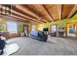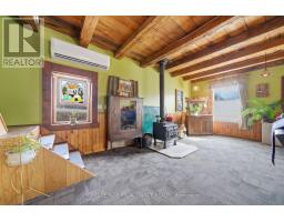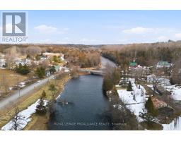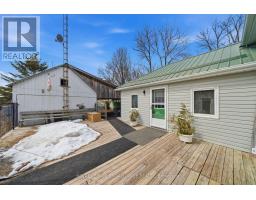 Enjoy life along the beautiful Salmon River in Marysville's hamlet of Kingsford. Less than 5 minutes north of the 401 resides this larger than it looks 1.5 storey home offering 1,600 sq feet of finished living space. Driveway access is safely tucked away on Blessington Road offering ample parking & sheltered covered option for two. Secluded south facing deck overlooks the river & invites you into the large eat-in kitchen with updated laminate flooring, pine ceiling & cabinetry + cozy propane freestanding fireplace. The massive living room is sure to impress with south, east & west facing windows, original wooden beam & door features, pine wainscotting & comfy wood stove. Full bath + main floor bedroom option here, creates a fabulous office or playroom as well. The upper level provides an inviting sitting room, once upon a time used as a nursery, two piece powder room and two great sized bedrooms, both with functional wall storage. Numerous exterior offerings include the drive shed with covered rear parking or secluded entertaining area protected from the wind & rain. 248 sq ft of storage here + a detached barn offering an additional 475 sq ft of outbuilding space. Both with upper level storage areas as well. Spacious rear yard, ideal for pets & children at play & a unique enclosed root cellar built into the hill. Ideal for cold storage, preserving your garden vegetable harvest or perhaps a fun fort. Minutes to Kingsford Conservation Park where you can picnic, hike, fish or wade in the water. 30 minutes south to popular Prince Edward County offering many breweries, wineries, award winning beaches & culinary gems. Welcome Home, to 2227 Deseronto Road with your very own view of the Salmon River. (id:47351)