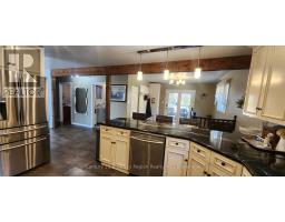 Private Bungalow tucked away, on nearly 3 Acres with a Pool & Spacious Layout. It offers the perfect blend of privacy, comfort, and functionality. The open-concept living and dining area is ideal for both everyday living and entertaining, featuring oak hardwood flooring and seamless flow throughout. The custom kitchen is a chef's dream, complete with large granite countertops, vinyl plank flooring, a built-in oven/microwave combo, and ample cupboard space, perfect for the avid cook or baker. The main level includes four well-sized bedrooms and a stylish 5-piece bathroom. Downstairs, you'll find a generous rec room, a large 5th bedroom, the laundry facilities, and a substantial unfinished family space that's insulated, wired, and ready for drywall, offering endless potential. Outside, enjoy approximately an acre of cleared, landscaped yard with nearly 2 acres of natural bush. Relax or entertain on the expansive front and back decks, take a dip in the pool, or utilize the detached double-car garage. A rare opportunity to enjoy country living with space to grow and create! (id:47351)