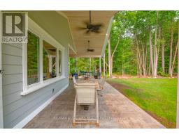 LUXURIOUS CUSTOM HOME IN A PREMIUM VILLAGE LOCATION ON A 1 ACRE PROPERTY! 3000 square foot bungalow with 5 bedrooms & 3 baths. The professionally landscaped gardens bring you into a covered stamped concrete porch which brings you inside to the light filled open concept main area. Coffered ceilings, Napoleon fireplace, heated White Oak floors and the Kitchen with professional appliances & commercial sized freezer & fridge, SS vent hood, 48' Jenn Air Range with double oven, SS griddle & grill, Italian quartz counters with huge island. The modern primary suite offers walk through closet, tray ceiling, gleaming 4 piece bath w/dual showers, soaker tub & a view of the peaceful backyard. Entire home was built using highest quality materials & finishes. PVC siding, radiant floor heating, On Demand HWT, R40 insulation w/R80 in the attic, oversized door, architectural mouldings, custom laundry room with black granite counters. Home guy with built in sauna, tons of walking & biking trails, marinas, boat launches & close to downtown Bobcaygeon. (id:47351)