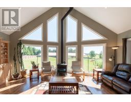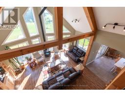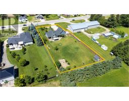 Beautiful custom built residence One floor home with oversized double attached garage on almost 3/4 ACRE lot surrounded by picturesque countryside in hamlet of Bryanston north of London. This amazing home is ideal for home based business w/bonus 2nd floor loft and office area with private exterior access + huge 26'8"X24"11" garage/workshop complete w/heat, hydro, water, AC + separate storage! Custom built in 2017 by the current owner, this amazing home boasts elegant curb appeal and craftsman-inspired front elevation w/stone accents, landscaping and large multi-car driveway; the light filled & carpet free open concept interior boasts dramatic 2-storey great room with wall of windows, vaulted ceiling with solid wood post & beam construction, WETT certified wood stove, custom built-in cabinets with concealed convenient wood box accessed by rear deck; entertainment sized open plan dining area and kitchen features access to covered deck from dining area, all custom built cabinetry, Corian counters, island w/seating, stainless steel appliances including gas stove; main floor primary bedroom with walk-in closet, access to private covered deck & luxurious ensuite; powder room privileges; main floor laundry/mudroom with washer & gas dryer; fully finished lower level features 2 additional bedrooms with oversized windows; family room with custom built-ins including convenient hand crafted "wall bed" for guests, 4pc bath, loads of storage and delightful reading alcove beneath the stairs; the unique design of the upper level loft boasts lounge area, large office & 2pc washroom -- is perfect for home office/business or separate in-law / guest suite. The fully fenced exterior is simply breathtaking and manicured to perfection with loads of grass space, large patio & thoughtfully situated septic system conveniently oriented on the north side of the yard to allow for plenty of space for future pool! Added features: 260ft deep dug well by Hayden Water Wells, owned hot water tan (id:47351)