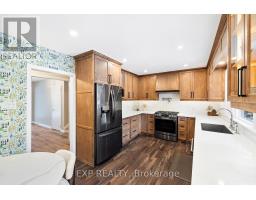Rare offering in prestigious Woodland Heights neighborhood NW Oshawa. Set on a beautifully landscaped lot with mature trees, this exceptional residence offers privacy, elegance, and timeless appeal. A secluded backyard oasis features a walkout from the upgraded kitchen to a sun-filled patio, creating the perfect setting for refined outdoor living and entertaining. The spacious and gracious living and dining rooms are designed for elegant gatherings and feature a cozy gas fireplace. A second gas fireplace anchors the expansive lower-level family/rec room, providing a warm and inviting retreat. Notable upgrades and features include a modernized kitchen with high-quality appliances, new flooring throughout, heated floors in the main bathroom, 200-amp electrical service, and a new furnace (2020), new survey and fence. The home also offers ample storage, a cold room, and an oversized double-car garage with convenient inside entry and parking for up to 8 cars. Extensive municipal improvements completed in 2021 include new water lines, sewer, curbs, and roadway, enhancing long-term value and appeal. Ideally located just steps from the scenic creek side Somerset Park and close to schools, public transit, and shopping. Meticulously maintained and cared for with pride, this distinguished home presents a rare opportunity to own in one of Oshawa's most sought-after neighborhoods. (id:47351)