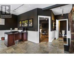 NEWLY APPROVED MEDICAL USE - MINOR VARIANCE. A rare opportunity to own a commercial non-conforming office and residence in one,offering an exceptional range of permitted uses. Approved uses include medical offices, barber and beauty shops, estheticians, shoe repair,tailoring and dressmaking, dry-cleaning depots, laundromats, photographic studios, and optical shops. This unique property allows you to liveand work in one place, with excellent visibility, ample parking, and flexibility for modern business owners. The 1.5-storey building blendsprofessional functionality with comfortable, upgraded living. The commercial entrance opens to a welcoming reception area with slate flooring,9' ceilings, track lighting, chair rail detailing, large windows facing Highway 8, and a convenient bathroom. A spacious waiting area leads to alarge studio space with soaring ceilings-ideal for a medical office or clinic, with flexible options for treatment rooms or consultations. A largebasement adds a private office and generous storage for records, equipment, or staff use. Outside, the property offers 10 parking spaces andtwo street-facing signs, providing outstanding exposure on a high-traffic corridor .The separate residential entrance reveals a beautifully updatedhome featuring an electric fireplace, stone feature wall, hardwood flooring, crown moulding, and California shutters throughout. The upgradedkitchen includes quartz countertops, stainless steel appliances, breakfast bar, backsplash, and under- and over-cabinet lighting. The primarybedroom offers a walk-out to a private balcony/deck. The fully finished basement adds a third bedroom with pot lights, built-in shelving, and agas fireplace, plus a 3-piece bathroom and a large storage room. The expansive backyard completes the offering with a two-level deck, in-groundsprinklers, and a large shed with hydro-ideal for additional storage or workspace. (id:47351)