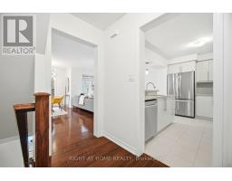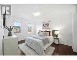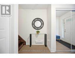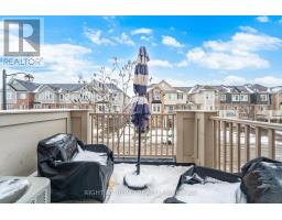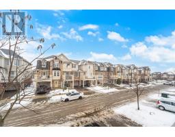 Bright and spacious 2-bedroom, 3-bath Mattamy-built freehold townhouse featuring a large welcoming foyer with direct garage access. Hardwood flooring throughout, including hardwood stairs, complemented by upgraded light fixtures. Open-concept living and dining area with a picture window. Upgraded kitchen with granite countertops, breakfast bar, and backsplash. Walk-out from dining room to an oversized wrap-around private balcony. Upstairs offers a primary bedroom with walk-in closet and full ensuite, a second bedroom, a small nook ideal for a home office or reading area, and a 4-piece bath. Zebra shutters throughout, no carpet, and no sidewalk for added parking convenience. Move-in ready! (id:47351)