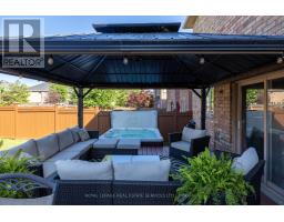 Exceptional 4+1-bedroom, 4.5-bathroom executive home in prestigious Joshua Creek, offering approx. 3,460 sq ft above grade plus a professionally finished basement with separate staircase-ideal for in-law or multi-generational living. Located in the highly ranked Iroquois Ridge High School catchment (9.2/10 - Fraser Institute 2023/24), and steps to Iroquois Ridge Community Centre and Glenashton Park, this home blends top-tier schools, recreation, and convenience, with nearby shopping and restaurants at the Uptown Core, and close to major highways. Impressive curb appeal featuring a large shade tree, a flagstone porch, and a flagstone-trimmed driveway. The private, pool-sized backyard with cedar fencing, a 20' x 15' deck, a gazebo, an 8-person hot tub, a shed, and a natural gas BBQ, is perfect for entertaining. This sought-after Fernbrook "Melbourne" model showcases 9' ceilings, a dramatic 18' family room ceiling, maple hardwood flooring, an oak staircase with iron pickets, a second oak staircase from the main floor to the basement, 2 fireplaces, dual home theatre systems, 200-amp service, EV charger, and backup generator. The custom cherrywood kitchen by Paris Kitchens offers under- and over-cabinet lighting, granite counters, stainless steel appliances, and a walkout to the deck and yard, while the formal living/dining and a private office add versatility. Upstairs features 4 spacious bedrooms, a loft, and 3 full baths, including a luxurious primary suite with a spa-like ensuite. The finished basement includes a hidden theatre with a 12-foot screen and 4K projector, a kitchenette/wet bar, a 5th bedroom, and a 3-piece bath. Major updates include roof, A/C, on-demand hot water (2018), driveway resealed (2025), upgraded attic insulation and ventilation. Fabulous home! (id:47351)