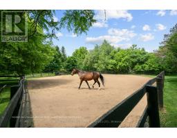 WELCOME TO GREYSTONE! Set beyond a gated, winding drive on 3.5 private acres, Greystone is a timeless Branthaven built estate and one of Kilbride's most distinguished properties. Blending sophistication with luxury, this exceptional residence offers remarkable privacy, stately presence, and the elegance of a classic country manor - just minutes from city amenities. The grounds are truly outstanding, designed for relaxation and entertaining. Enjoy a saltwater Gunite pool, expansive multi-tiered decks, private putting green, and a horse paddock with training circle - creating an unparalleled outdoor lifestyle. From quiet mornings poolside to memorable summer gatherings, this estate delivers living on a grand scale. Inside, expansive principal rooms showcase warmth, quality, and thoughtful design. A double-sided wood burning fireplace connects the family room to the chef-inspired kitchen, complete with quartz countertops, Sub-Zero and KitchenAid appliances, and custom cabinetry. The formal dining room is ideal for elegant entertaining, featuring a bow window, wainscoting, and French doors. The sun-filled primary suite is a true retreat, offering a wood burning fireplace, private sitting room, and a spa-inspired six-piece ensuite with double vanities, freestanding soaker tub, curbless shower, and heated floor. Additional bedrooms provide flexibility, including one currently styled as a luxurious dressing room that can easily be converted back. The finished lower level expands the living space with a wet bar, recreation room, gym, guest bedroom, full bathroom, and a temperature-controlled wine cellar. Modern systems and updates include municipal gas, drilled well, septic system, updated windows and roof, fencing, heated garage, invisible fence, backup generator, and a 10-zone irrigation system. Greystone is more than a residence - it is a private estate where luxury, lifestyle, and nature come together in perfect harmony. (id:47351)