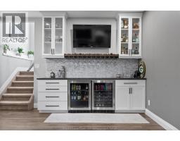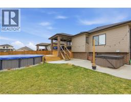 Homes like this rarely come available in the highly sought-after Kingsbridge neighbourhood of Amherstburg. Welcome to 234 Mullen Crescent, a beautifully finished raised ranch built in 2019 offering two fully finished levels thoughtfully designed for both entertaining and everyday living. The bright open-concept main floor features vaulted ceilings and a stunning kitchen with quartz countertops, stainless steel appliances, pantry and oversized island overlooking the spacious living and dining areas. Patio doors lead to your private backyard retreat complete with a covered deck, pool, hot tub and fully fenced yard - the perfect space for relaxing or hosting friends and family. The main level also includes a spacious primary bedroom with ensuite bathroom, along with two additional bedrooms and a full bath. The fully finished lower level offers exceptional additional living space featuring a large family room with gas fireplace, custom built-in cabinetry and a beautifully designed bar with beverage fridges and display storage. This level also includes a fourth bedroom with sliding barn doors, a full bathroom and flexible space ideal for a home gym, office or recreation area. Additional highlights include an attached two-car garage with inside entry and modern finishes throughout. Located in one of Amherstburg's most desirable family-friendly communities close to parks, schools and everyday amenities, this move-in ready home offers the perfect blend of comfort, style and lifestyle. (id:47351)