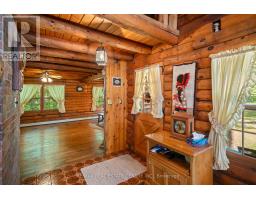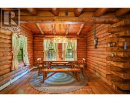 Discover your own private paradise with this lovingly crafted custom log home, built in 1980 by the original owners. Nestled on just under 42 acres featuring a mix of lush forest, open land, and protected wetlands/conservation area (NPCA). this unique property offers peace, privacy, and endless potential. The home features a classic log design with soaring ceilings, rustic charm, and an unfinished basement ready for your vision. The current layout could easily be reconfigured into a 3-bedroom retreat, with one master bedroom on the main floor - making it perfect for families or those looking for a countryside escape. Outside, a detached 3-car garage provides ample storage or workshop space, while the expansive acreage offers trails, wildlife, and the kind of tranquility that's hard to find. Whether you're seeking a hobby farm, a recreational retreat, or simply a serene place to call home, this property delivers. A rare opportunity to own a custom-built log home with character and soul, surrounded by nature yet within reach of town amenities. Clients have a water collection and water reuse system in place and have used only rain water to run this home for many years. Buyer and Buyers Agent to verify all information with regards to the Conservation/wetlands, zoning, room sizes. (id:47351)