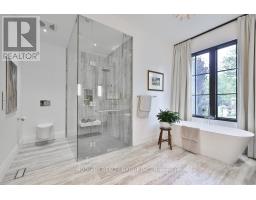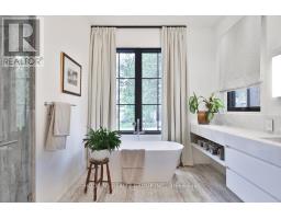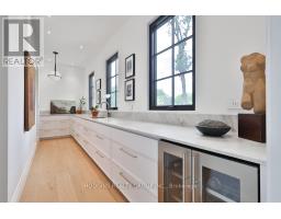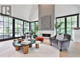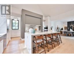 Custom Masterpiece in Prestigious Mineola West by architect Lauren Boyer. A residence of distinction where design, craftsmanship & setting converge. Main floor Primary Bedroom retreat anchors a flowing layout with heated white oak floors, dramatic ceilings and expansive windows framing wooded views. Gourmet kitchen finished in exquisite Taj Mahal quartzite with oversized island, custom cabinetry, professional-grade appliances & separate prep kitchen and mudroom with laundry. The inspiring Great Room shares magnificent open vaulted ceilings with the kitchen, and offers a relaxing lounge vibe with vibrant fireplace and grand piano niche/library. Walkout to entertainers terrace complete with outdoor kitchen and gas grill. Bespoke entry doors by Brenlo bring you to elegant dining and living spaces with curated lighting by Top Brass, and refined attention to every detail. The raised lower level features an expansive recreation lounge with heated floor and an additional bedroom/office with full bath, abundant storage, and a separate entrance. The second floor has an additional master suite, plus two more bedrooms, a full bath, laundry, and ample storage.Exterior features a stately & durable metal roof, in-ground sprinklers, Landscape architect Mark Pettes, lush mature gardens & sought-after circular drive. A rare blend of modern luxury & timeless architecture in one of South Mississaugas most coveted enclaves. Over 5500sf of luxury living space on premium 100ft frontage. Close to Kenollie Public School, a 5-minute walk to the Credit River, 10-minute walk to the Go Train, or a 20-minute walk to the lakefront. (id:47351)