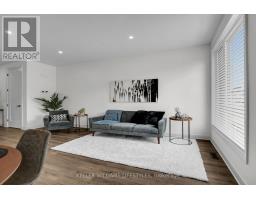 Located just minutes from London's west end, the charming community of Kilworth offers a perfect blend of small-town atmosphere and everyday convenience. Set near the Thames River and surrounded by natural scenery, this area provides easy access to the city while enjoying a quieter setting. This modern townhome is part of the Aura development, known for its contemporary architecture and stylish design.This approximately 1,731 sq. ft. two-storey townhome features 3 bedrooms and a bright open-concept layout. Highlights include 9-foot ceilings, 8-foot interior doors, an oak staircase with steel spindles, wide-plank stone polymer composite flooring, pot lights, and modern fixtures throughout. The great room flows into a gourmet kitchen with quartz countertops, a large peninsula, modern cabinetry, and a stainless steel appliance package. The primary bedroom offers a spa-inspired ensuite with glass shower, double sinks, quartz counters, and a walk-in closet. Additional features include an unfinished basement, large windows, and a deck off the great room. Available February 15th (id:47351)