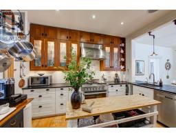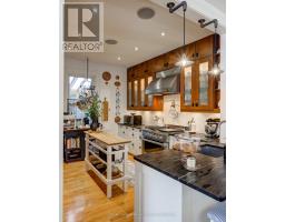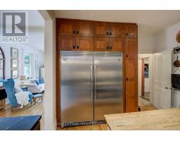 Welcome to this stunning 3-storey brick century home, perfectly situated on a quiet street just steps from the river and within walking distance to Stratford's vibrant downtown core. A covered front porch invites you into a charming foyer, opening into a bright and spacious living and dining area-perfect for entertaining. The chef's kitchen is a true highlight, featuring a double-wide fridge, high-end gas stove with pot filler, garburator, central vac kick plate, and built-in ceiling speakers. The main floor also offers a versatile sewing room ideal for a home office, along with a convenient main floor bedroom complete with ensuite bath and walkout access to your private backyard oasis. Enjoy summer days on the deck or relax by the heated in-ground pool, surrounded by a fully fenced yard and mature trees. Upstairs, the second level features two bedrooms (one currently used as a walk-in closet), an updated 4-piece bathroom, and convenient laundry. The finished third level boasts a walkout balcony and flexible space perfect for a family room or fourth bedroom. The finished basement provides additional living space, currently used as a guest bedroom, and includes its own 4-piece bathroom. Additional features include an attached garage with direct access to a mudroom, furnace (2023), and a reverse osmosis water system. An exceptional home offering character, modern amenities, and an unbeatable location. Call your REALTOR today to book your private showing. (id:47351)