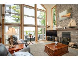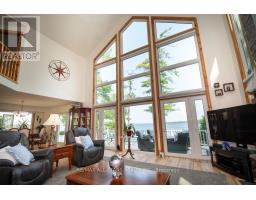 Sought-After Balsam Lake Waterfront Retreat! Welcome to your dream home on the highly desired shores of Balsam Lake! This beautifully updated 5-bedroom, 2.5-bathroom home offers the perfect blend of luxury, comfort, and unbeatable lakefront living. Facing west, you'll enjoy breathtaking sunsets and expansive views from the comfort of your own living room thanks to soaring 24-ft cathedral ceilings and stunning floor-to-ceiling windows.The newly renovated kitchen is a chefs delight, and multiple large decks provide the ideal setting for entertaining or relaxing while soaking in the scenery. The shoreline features an armour stone front, a permanent maintenance-free dock, and a hard bottom perfect for swimming and excellent boating right from your backyard. The second-floor living area is a show stopper, offering panoramic views of the lake, while a cozy bunkie adds even more charm, complete with a 2-piece bathroom, living space, and a spacious bedroom for guests or extended family. Additional features include a two-car garage, a handy shed for storage, and beautifully landscaped grounds. This is a rare opportunity to own a premium waterfront property in a truly spectacular location. Lake life starts here dont miss your chance! (id:47351)