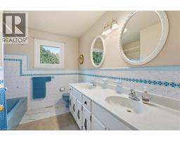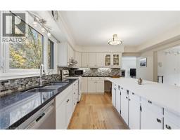 Welcome to 24 River Road, Brantford. Rare offering! Nestled on a picturesque 17.56-acre ravine lot surrounded by mature trees and custom-built homes, this charming two-storey family residence offers 2,296 sq. ft. of living space above grade with 4 bedrooms and 2.5 bathrooms. Set back from the road in a peaceful, established area, the property features impressive amenities for both living and leisure, including two shops (a 700 sq. ft. heated shop with epoxy floors and a 500 sq. ft. secondary shop) plus an attached 883 sq. ft. heated garage with epoxy floors and a separate entrance to the basement. There is also another outbuilding in the backyard with large rear door. Numerous updates ensure comfort and peace of mind, including vinyl windows (except the front two), a new furnace and A/C (2021), a beautifully renovated kitchen with stone countertops, custom cabinetry, and hardwood flooring, as well as a roof replaced within the last 10 years. Experience the ultimate in privacy and serenity at this truly generational property, perfect for family living in a natural, tranquil setting. (id:47351)