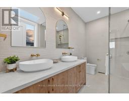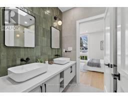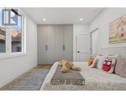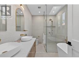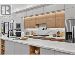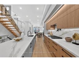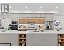 Step into a world of refined elegance in this custom-built showpiece, perfectly positioned on an extraordinary 160-ft deep lot. Designed with sophistication and functionality in mind, this home boasts over 3,100 sq ft of meticulously finished space, flooded with natural light through floor-to-ceiling windows and soaring ceilings. The open-concept main floor is anchored by a chef's dream kitchen, featuring a massive 16-ft island, extensive drawer storage, and ultra-durable porcelain counters and backsplash. The adjoining family room is both chic and inviting, highlighted by a bespoke feature wall, elegant built-ins, and a mesmerizing water-vapour fireplace. Double doors flow seamlessly onto a stylish deck overlooking the private, deep, fully fenced backyard, offering endless possibilities for outdoor living and entertaining. Architectural open-riser stairs ascend to a breathtaking upper level illuminated by four skylights. The luxurious primary suite offers a custom walk-through dressing area with built-in closets and skylight, along with a fully tiled, spa-worthy ensuite complete with a custom double vanity, curbless glass shower, and a freestanding tub. The second bedroom includes built-in closets, a floor-to-ceiling window, and access to a semi-ensuite with double vanity, separate water closet, and a glass-enclosed shower. The third bedroom shares the semi-ensuite and includes built-in closets and large window. The impressive lower level is bright and versatile, featuring a front walkout entrance, open-concept living space with kitchenette, a spacious bedroom, and two full washrooms, ideal for in-laws, guests, or multi-generational living. A rare blend of style, craftsmanship, and modern amenities-this home is a true standout for the most discerning buyer. The exterior continues the theme of custom craftsmanship with the front styled with a blend of wood composite, porcelain slabs, ACM Panels and an interlocked driveway. (id:47351)