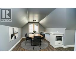 Historic Mixed-Use Gem Across from St. Joe’s – 242 James St S, in the heart of Hamilton’s vibrant downtown core, this stately mid-19th century building (circa 1850) offers timeless Victorian charm blended with flexible mixed-use functionality. Featuring classic brickwork, tall arched windows, steep gables, and heritage detailing, this three-storey property stands out as a remarkable investment and ownership opportunity. Boasting nearly 5000 sq ft, the main floor includes 1962 sq ft of well-designed commercial space: three offices, a reception area, full kitchen, full bath, and a feature brick fireplace. Access to a large unfinished basement adds expansion or storage potential. A rear stairwell offers emergency egress and access to the private parking area. Enjoy 4 total parking spots—3 rear via private drive and 1 front boulevard. A separate below-grade basement entrance allows for possible future independent use or rental. The upper two floors provide spacious residential accommodations: six bedrooms, two kitchens, three full baths, two living areas, dining space, and laundry. Perfect flexible rental opportunities. Ideal for professionals working at nearby hospitals, including St. Joseph’s directly across the street. Additional features include 10' ceilings on the main level, outdoor deck on 3rd level, air conditioning, electronic entry, and visible signage options. Nestled between many similar Victorian era properties of the Durand and Stinson School areas, multi unit remarkably stellar multi-million-dollar properties nearby. Steps to shopping, dining, medical offices, hospitals, GO transit, the escarpment, and major highways. Quick access to Hamilton International Airport and Porter Airlines. Live, work, and invest in one of Hamilton’s most desirable mixed-use locations. A remarkable opportunity to earn income from residential rentals while serving clients in the comfort of updated office space. (id:47351)