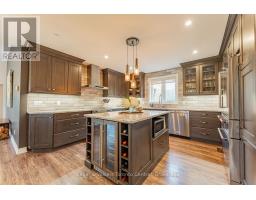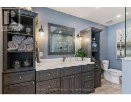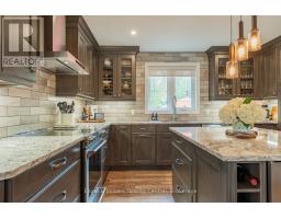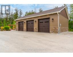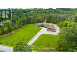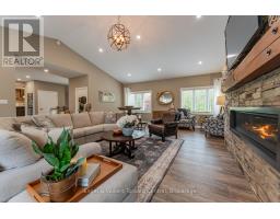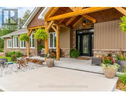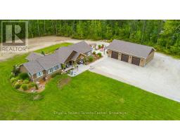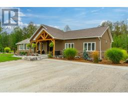 Indulge in Refined Country Living. This stunningly renovated bungalow, set on a private five-acre woodland, offers an unparalleled lifestyle of luxury and tranquility. The gourmet kitchen is a culinary masterpiece, boasting high-end stainless steel appliances and durable, elegant Cambria Quartz countertops. The open-concept layout flows beautifully into a grand living area with a breathtaking 13-foot vaulted ceiling and a striking stone fireplace. Enjoy formal dining with picturesque views. The primary suite is a true oasis, featuring a spa-inspired 4-piece ensuite with a steam shower and heated floors, plus private access to a covered hot tub porch. The finished lower level adds versatile living space with two bedrooms and a bath. A standout feature is the fully insulated and heated 3-bay workshop. Embrace outdoor living with a covered patio, fire pit, and the peaceful presence of local wildlife. Enjoy the best of both worlds: serene country living with easy access to Owen Sound's conveniences and outdoor adventures. (id:47351)