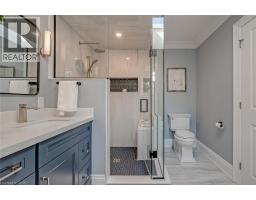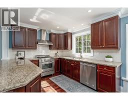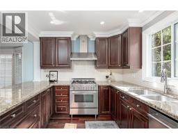 STEPS FROM THE LAKE WITH INCREDIBLE WATER VIEWS THROUGHOUT! This 4+1 bedroom, 3.5 bath 2 storey home is situated on the south side of Lakeshore Road and is beautifully appointed throughout. The home is approximately 2400 square feet PLUS a finished lower level. The main floor boasts beautiful hardwood flooring, smooth ceilings with pot-lights and crown moulding throughout. The large updated eat-in kitchen includes a large peninsula, quality cabinetry, granite counters, a pantry, wine room and stainless-steel appliances! The kitchen is also open to the oversized family room with a gas fireplace and access to the private backyard with stunning views of the lake. The main floor features a large living / dining room combination with a second gas fireplace, powder room and garage access. The second level of the home includes 3 large bedrooms PLUS an oversized office / den with a private balcony and two full bathrooms. The primary bedroom includes a walk-in closet and a stunning 4-piece ensuite with heated flooring. The lower level has a large rec room, 3-piece bath, bedroom, laundry room and ample storage! The exterior has been professionally landscaped and features a private yard with a large composite deck, great curb appeal and a double driveway with parking for 4 vehicles as well as a double car garage! This home is conveniently located close to all amenities and walking distance to Burlington's core and all it has to offer! Beautiful lake viewing area at the end of the street to enjoy all the spectacular sunsets up close! (id:47351)