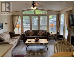 This charming, 3-bedroom seasonal cottage is nestled in lush greenery within the beautiful Wasaga Country Life Resort, offering a serene retreat with a lovely porch and vibrant garden. The resort features four outdoor pools, an indoor pool, a recreation center with activities for all ages, a bouncy pad, basketball courts, and much more, ensuring children of all ages will never be bored. Just a five-minute walk takes you to the stunning Georgian Bay beaches. Inside, the cottage has a well-organized kitchen with white cabinets, a cozy dining area, and modern appliances. The living room offers comfortable seating, a warm electric fireplace, and large windows that fill the space with natural light. The sunroom is a bright, inviting space with large windows, white wicker furniture with floral cushions, and warm lighting, perfect for relaxing in style. Sight fees for 2025 are $7025 plus hst. (id:47351)