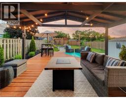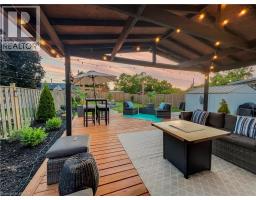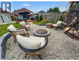 Beautifully updated brick bungalow offering a rare blend of vintage character and modern upgrades, available as a 6-month short-term rental. This charming home features a welcoming covered front porch and soaring 10-foot ceilings throughout the main level, creating a bright and open living environment. The updated kitchen, renovated in 2018, showcases vinyl wood-grain flooring, crisp white cabinetry with soft-close doors, wood-look countertops, a classic subway tile backsplash, and a central island ideal for meal preparation and casual dining. The spa-inspired bathroom includes stone tile flooring, a deep soaker tub, a separate stand-alone shower, pot lighting, a smart mirror above an IKEA vanity, and a bathroom fan with built-in Bluetooth speaker. Main floor laundry has been enhanced with custom shelving and a wood-framed washer and dryer enclosure. The backyard offers a private outdoor retreat with a built fire pit area finished in gravel stone, hanging chairs, a partially covered deck, and a fully fenced yard with gate access. West-facing exposure provides beautiful sunset views. The basement includes a recently finished bonus room, with ample additional storage in the dry unfinished space. The home currently offers two bedrooms plus an office, which can easily function as a third bedroom if required. Additional updates include a shiplap fireplace wall in the office, eavestroughs completed in 2021, roof replaced in 2015, and a furnace approximately eight years old. This fully furnished, well-maintained property is ideal for tenants seeking a comfortable short-term rental with style, privacy, and functionality. Easy to show. Home will be fully furnished with different Furniture than in the photo's (id:47351)