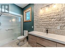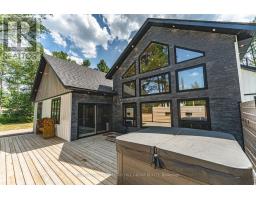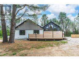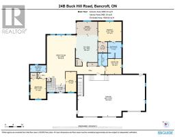 GORGEOUS NEWER BUNGALOW ON 1 ACRE, NEARLY 2,600 FINISHED SQ FT, HEATED, INSULATED & DRYWALLED TRIPLE GARAGE, 7-PERSON HOT TUB & 600 SQ FT DECK! Built in 2022, 24B Buck Hill is turning heads with stone accents, vinyl siding, bold peaked roof lines, black-framed windows, and soffit lighting that steals the show at dusk. The attached triple-car garage spans nearly 1,500 sq ft, heated, insulated, and drywalled, built with 12-foot ceilings, 220-volt welder plugs, LED strip lighting, and three modern 10 ft x 10 ft doors powered by side-mounted LiftMaster Wi-Fi openers. Step inside and the great room makes an immediate impression, a wood-plank vaulted ceiling soaring above a dramatic wall of windows that brings the outdoors into every hour. The kitchen keeps things social and current with quartz countertops, a central island designed for conversation, a tile backsplash, and updated stainless-steel appliances. The main-floor primary bedroom offers a calm, private retreat with a 5-piece ensuite featuring a soaker tub, walk-in shower, dual sinks, and a stand-up shower. Two additional bedrooms and a full bathroom create quiet pockets for family and visitors, the main-floor office earns its place for uninterrupted work, and a laundry room plus a powder room complete a layout that simply works. The basement remains untouched, offering a separate entrance from the garage and a partially completed 3-piece bathroom, giving future owners a head start on flexible guest space or private living quarters. Less than 10 minutes from downtown Bancroft for gas stations, restaurants, grocery stores, schools, parks, medical services, and daily essentials, this #HomeToStay makes every arrival feel like something worth looking forward to. (id:47351)
