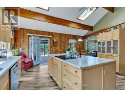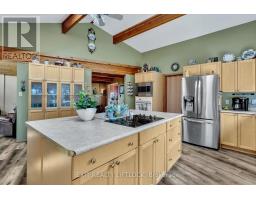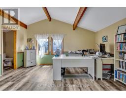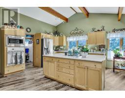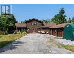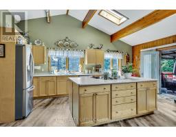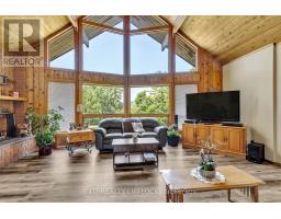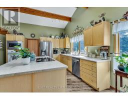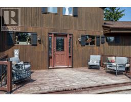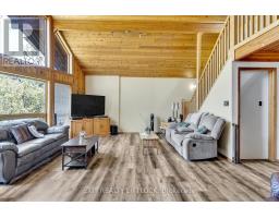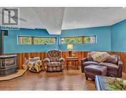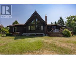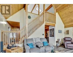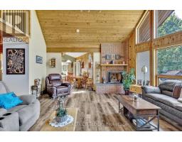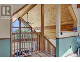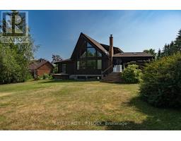 WOW! A great room with cathedral ceiling and a literal wall of windows. This wood house is a pleasure to show. Natural light pours in with the high ceilings and you capture an amazing sense of space. Next to the great room is the kitchen with a large island and built-in appliances. Sky-lights allow additional natural light, with a patio door leading to a covered rear deck. The main floor laundry/pantry has an exit to the side yard. The roomy primary bedroom has a 3pc ensuite with heated flooring, and a patio door to the rear yard. The loft overlooking the great room is set up as an office, but with it's 2pc bath would be a comfortable bedroom. In the lower level is a rec room with laminate floors and a pellet stove. Downstairs you will find a 4th bedroom, den, workshop/craft room and utility room. There is an oversized double detached garage with hydro and pellet stove. The property has a large lot that allows for many options for family fun. The property belongs to an Association with access to a private waterfront park with available docking. Annual fee is $200. (id:47351)