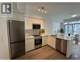 Modern 1-bedroom + den condo in Kitchener’s Duo. Offering 561 sq ft of interior living space plus a balcony, this unit combines style and functionality. The bright, open-concept layout features floor-to-ceiling windows, a sleek kitchen with stainless steel appliances, quartz countertops, tile backsplash, and ample storage. A versatile den complements the space, while the bathroom showcases a quartz vanity and soaker tub. Enjoy in-suite laundry, underground parking and access to luxury amenities including a fitness and wellness centre, swim spa, bowling alleys, arcade, party lounge, dog park, amphitheatre, BBQs, work pods, and cabanas. Conveniently located near Google, Grand River Hospital, LRT, GO Station, shops, restaurants, and Victoria Park. The Photos have been virtually staged. (id:47351)