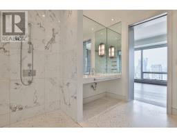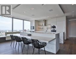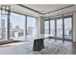 This extraordinary suite at the Four Seasons Private Residences in Yorkville redefines luxury living in the heart of Toronto. This is not just a residence but an elevated lifestyle reserved for a select few. Created by merging two units into a single masterpiece, the suite spans approximately 5000 square feet with soaring 10' ceilings, presenting the scale and poise of a home in the sky. Enter via two private elevators directly into an elegant foyer of epoxied and honed marble, then step into luminous living spaces framed by floor-to-ceiling windows with sweeping south-west-east unobstructed views and two expansive private terraces.The culinary centrepiece is a chef inspired kitchen featuring custom Kobi cabinetry, two waterfall edge Statuario marble islands and fully integrated Subzero and Miele appliances. Rich walnut and Xorel panels, Moncer custom Herringbone Oak Hardwood flooring and a floating fireplace showcase meticulous design throughout. Four generous bedrooms and five bathrooms - including a primary ensuite with heated floors, Vola plumbing fixtures, honed Calacatta Oro epoxy filled mosaic detailing and large walk in closet - offer sanctuary and luxury in equal measure.Comfort and ambiance are seamlessly managed via two hvac units with concealed returns and linear vents. Residents enjoy world class Four Seasons services: 24/7 concierge, full service spa, valet parking, indoor pool, state of the art gym and wellness centre, room service, house keeping and culinary options include Cafe Boulud and D bar lounge, all in a secure refined environment (id:47351)