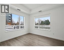 Welcome to the Eva floor plan at Blackstone Condominiums — an elegantly upgraded two-bedroom, two-bathroom suite complete with a 78 sq. ft. private patio. This ground-floor corner residence offers the rare luxury of its own private entrance, giving you the ease and exclusivity of townhome-style living within a beautifully modern, thoughtfully planned community. Inside, the Eva model showcases clean, contemporary finishes including quartz countertops, stainless steel appliances, and a selection of elevated upgrades that enhance the well-designed 800 sq. ft. layout. The primary bedroom features a spacious walk-in closet, and everyday comfort is made effortless with one underground parking space, high-speed internet, and heat all included in the lease. Blackstone blends Scandinavian simplicity with the warmth of a modern farmhouse aesthetic, delivering a lifestyle that feels both elevated and effortless. Residents enjoy access to an impressive collection of amenities, including a fully equipped gym and fitness studio, party room, games room, business center, bike room, keyless entry, a grand lobby, and in-suite laundry. Outdoor amenities are just as refined, with a rooftop terrace featuring BBQs and lounge seating, a ground-level courtyard complete with a hot tub and gas fire bowl, multiple patio areas, a dog washing station, and an inviting outdoor dining space. Added peace of mind comes with 24/7 security throughout the community. Ideally situated in a well-connected and convenient area of Waterloo, this residence offers easy access to everyday essentials, recreation, and transit, with cafés, shops, and restaurants close by. Perfect for professionals, downsizers, or anyone seeking a stylish and low-maintenance home, this suite delivers refined living with exceptional ease and comfort. (id:47351)