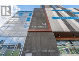 Discover elevated city living at Unit 2514, 60 Frederick Street, a modern 2-bedroom, 2-bathroom condominium in one of Downtown Kitchener's most recognizable high-rise buildings. Located on the 25th floor, this thoughtfully designed suite showcases sweeping views across the Waterloo Region. The unbeatable location places you within walking distance of the LRT, Conestoga College's Downtown Campus, major tech hubs, dining, and shopping. The interior blends style and functionality, featuring engineered hardwood flooring, a contemporary kitchen with clean lines, and integrated smart home features including keyless entry, smart climate control, and lighting. Two generously sized bedrooms and two full bathrooms provide flexibility for professionals, roommates, or students seeking comfort and privacy. Residents benefit from an impressive selection of building amenities such as a 24-hour concierge, fitness and yoga spaces, rooftop terrace, party and meeting rooms, bicycle storage, car-sharing services, and EV charging stations. Offering convenience, modern living, and an unbeatable downtown location, this condo is ideal for those seeking a connected urban lifestyle. (id:47351)