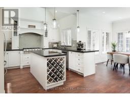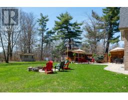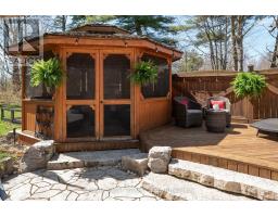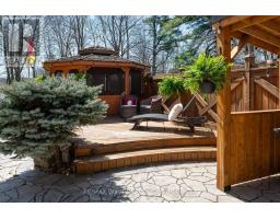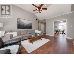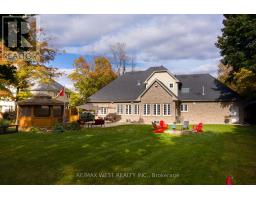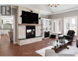 A Custom-Built Masterpiece in the Heart of Erin! This bungaloft offers over 4,300 sq ft of total living space, blending refined craftsmanship with everyday comfort. Pride of ownership is evident in every detail from the hand-stained hardwood floors to the thoughtfully designed indoor and outdoor living spaces. The chef-inspired kitchen features upgraded solid wood cabinetry, a new LG fridge, double oven, gas cooktop, wine fridge, and large centre island perfect for gathering with family & friends. The adjoining dining & sitting areas share a stunning two-way gas fireplace. Step outside to discover your private retreat complete with a sheltered BBQ area(with two gas lines), screened-in gazebo with powered lighting and ceiling fan, multiple seating areas, elegant fence-line lighting, rough-in for future hot tub, and a fire pit with wood storage all overlooking the tranquil pond beyond. The living room offers cathedral ceilings, a second view of the two-way fireplace, and surround sound system that extends to the patio for effortless indoor-outdoor entertaining. The main floor primary suite is a true haven, featuring a spa-like 5-pc ensuite with soaker tub, walk-in shower, double sinks, and walk-in closet. The main level also includes a stylish home office, 2-piece bath, and convenient laundry room with access to the 4-car insulated garage divided into two sections, including a heated area. Upstairs, you'll find three beautifully appointed bedrooms and a 5-pc bath ideal for family or guests. The lower level is designed for year-round enjoyment, featuring a games area, wet bar, home theatre with surround sound, gym, 3-piece bath, gas fireplace, and custom lighting. This remarkable home is within walking distance to boutique shops, restaurants, the high school, parks, trails, & more. A Generac generator powers most of the home, offering peace of mind without compromise. A rare opportunity to own a home that perfectly balances luxury, functionality, and small-town charm. (id:47351)