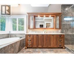 Located in the heart of Roseland, this exquisite 3+1 bedroom, 4+2 bath custom home with just under 6000 square feet of living space steps to Lake Ontario blends timeless craftsmanship with luxurious modern amenities. A natural stone feature wall and open staircase in the foyer sets the tone for the beautiful features found throughout. The great room impresses with 22 foot ceiling height, a floor to ceiling stone fireplace, wood beams, and a built in walnut wet bar, seamlessly flowing into the chef’s kitchen with custom cabinetry, granite countertops, premium stainless steel appliances, and a large island. The sun filled dining room opens to a four season sunroom with radiant in floor heating and a second stone fireplace, extending the living space to the beautifully landscaped backyard with cedar deck and retractable awning. The primary suite offers a private retreat with a spa like five piece ensuite, walk in closet, and direct access to the sunroom. Upstairs features two bedrooms, each with its own bath, while the lower level boasts radiant heat, a spacious recreation room with wet bar, additional bedroom with ensuite, exercise room, and ample storage. Thoughtful details include white oak flooring, crown moulding, ten inch baseboards, California shutters, surround sound, and smart mechanicals with zoned heating, security system, and cameras. With a two car garage, six-car driveway, and proximity to top schools, this Roseland residence offers the perfect blend of elegance, comfort, and convenience. (id:47351)