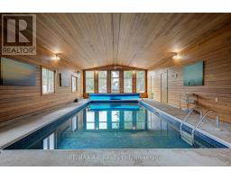 Welcome to your private retreat on nearly 2 acres, on a cul de-sac backing onto the serene Black Creek. This beautifully maintained 3+1 bedroom, 3-bath ranch bungalow offers space, comfort, and an exceptional lifestyle you won't find anywhere else. Step inside to a bright, inviting eat-in kitchen and a spacious living room filled with natural light. The primary bedroom features a convenient cheater ensuite, and the layout is perfect for both everyday living and hosting family gatherings. The fully finished basement greatly expands your living space. Complete with a large bedroom with double closet, cozy family room, media room, butler's pantry, a second 4-piece bathroom, and laundry. Ideal for guests, teens, hobbies, or even muliti generational living. This home truly shines when it comes to entertaining and enjoyment. Swim year-round in the heated indoor pool, relax on the back deck or concrete patio, and take in the peaceful, fully private backyard surrounded by nature. Car lovers, hobbyists, or small-business owners will appreciate the attached 2-car garage with a handy 2-piece bath, plus a double-car Quonset garage and 2 additional storage sheds, endless room for tools, toys, projects, and equipment. Located in a warm, family-friendly neighbourhood with an invisible dog fence already installed for your pets. This is the lifestyle upgrade you've been waiting for. Come experience the privacy, space, and comfort this unique property has to offer. Contact your Realtor today to book your private showing. (id:47351)