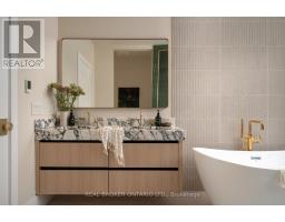 Historic Charm Meets Modern Mastery & flawless design in this 1900s home reimagined, Professionally designed & complete with a newly added third storey that turns everyday living into elevated luxury. Main Floor - Step inside to soaring 12-foot ceilings, a massive arched window flooding the home with light, and herringbone hardwood floors that set a timeless tone.A designer powder room with a floating toilet and imported custom marble vanity makes even the small details shine.The chef's kitchen blends soft architectural curves with bold masculinity - Wolf gas range, European appliances, and a marble countertop that demands attention.A custom-built family room anchors the back of the home, leading seamlessly to the deck and professionally landscaped yard. Second Floor - Space & Sophistication w Three generous bedrooms, each with custom built-in storage.The second bedroom features three stunning arched windows - an architectural nod to the home's heritage.The spa-like 5-piece bathroom feels lifted from a boutique hotel, while a style-forward laundry room adds functional flair. Third Floor - Private Primary Retreat with A full-floor sanctuary designed for serenity: his-and-her walk-through closets, built-in media and vanity desk & sitting area and a 5-piece designer ensuite with luxurious finishes.Walk out to a large private terrace with clear skyline views - the perfect escape for morning coffee or evening wine. Lower Level - Bonus Living in Finished basement with a rec room and 5th bedroom featuring a 3-piece ensuite - ideal for guests, nanny suite, or home office.Exterior Brick home with timeless curb appealand no stucco to be found. High-end Nuewal siding & Professionally landscaping front and back, Two-car laneway parking with custom garage door. Location - The Best of the Best Nestled in one of the city's most coveted pockets - steps to the subway, TTC, Yorkville, U of T, and Toronto's top shops, restaurants, and cafes. (id:47351)