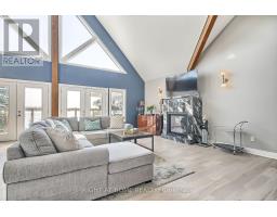 Escape to the waterfront in Kawartha Lakes! This stunning 4-season custom home offers 2,700+ sq ft of beautifully designed living space on the peaceful shores of Lake Scugog, part of the scenic Trent-Severn Waterway. Perfect for families, retirees, investors, or anyone dreaming of a relaxed lakeside lifestyle with year-round recreation just outside your door. From the moment you enter, you're greeted by soaring vaulted ceilings, expansive floor-to-ceiling windows, and engineered hardwood flooring that flows throughout the main living areas. The open-concept great room impresses with exposed beams, a cozy propane fireplace, and a walkout to a spacious cedar deck overlooking the water, ideal for entertaining or quiet morning coffee. The chef-inspired kitchen blends style and function with granite countertops, a large island, built-in appliances, a beverage & wine fridge, designer lighting, and custom wainscoting. Every detail has been thoughtfully curated for comfort and elegance. The main level includes two large bedrooms with double closets and ceiling fans, while the lofted primary suite offers a private sanctuary with panoramic lake views, vaulted ceilings, a sitting area, and a luxurious ensuite with a glass shower and soaker tub. Downstairs, the walkout basement is fully finished and perfect for guests or multi-generational living. It features a spacious rec room with a bold 3D mural accent wall, a kitchenette with island, crown moulding, pot lights, a 4th bedroom, a 3-pc bath, and direct access to the stone patio and landscaped lakeside yard. Located just a short walk to Sand Bar Beach and public boat launch, and only minutes to Port Perry and Lindsay for shopping, restaurants, and hospitals. Enjoy boating, swimming, skating, snowmobiling, and fishing right at your doorstep. Only 1.5 hours to Toronto!A rare blend of luxury, comfort, and natural beauty. Don't miss this one! (id:47351)