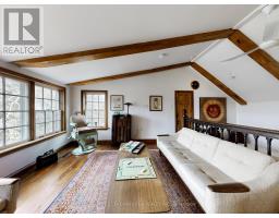 Welcome to 26 Church Lane, affectionately known as The Cranberry House, a truly special residence in historic Thornhill. Set on a secluded lot backing onto a picturesque, wooded ravine overlooking the golf course, this remarkable home offers approximately 3,022 sq ft of elegant main floor living surrounded by lush greenery and complete privacy. Located within the Thornhill Heritage Conservation District, the property carries a rich legacy tied to Sir Robert Watson-Watt, inventor of radar, and features beautifully curated English-style gardens designed by Roland Barnsley.The thoughtfully designed main level offers 4 spacious bedrooms and a convenient combined laundry and powder room. The primary retreat includes a 3-piece ensuite and his-and-hers closets, while the second bedroom features a charming double-sided wood-burning fireplace. A bright eat-in kitchen walks out to a serene private garden with tranquil ravine views-perfect for relaxing or entertaining. The upper loft provides versatile space for entertaining, with potential for a study or home office. Additional highlights include a built-in 2-car garage and a detached 3-car garage with loft-ideal for a workshop, studio, or creative space. Ideally located minutes to parks, golf, top-rated schools, community centres, Yonge Street amenities, transit, and highways 407/404.A rare offering blending history, nature, and refined living-this is a home unlike any other. **Reference Plan Available Under Attachments ** (id:47351)