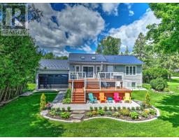 This comprehensively updated and immaculately maintained lake house offers all that is great about waterfront living while residing within easy commuting distance to the northern GTA. Located in the friendly community of Western Trent on the desirable south-western shore of Canal Lake, the property provides 80 ft of waterfront on a level lot with lovely vistas to the opposite shore. The home features over 2,200 sq ft of living space including the fully finished basement, and has a brand new feel owing to the long list of recent renovations including all new stone and vinyl siding, metal roof, and a new double attached drive-through garage with a paved driveway. Interior renovations include a new kitchen and appliances, new flooring, ceilings, crown molding, California shutters, and a new sliding door that leads to a rebuilt multi-level deck and patio. The home is exceptionally energy efficient with upgraded insulation and a newer (2018) heat pump and electric furnace. Both the roadside and waterside yards have been professionally landscaped, and mature trees along the lot lines ensure excellent privacy. The living is easy here as the municipality provides the water supply, weekly garbage collection and timely snow clearing along paved Greenwood Crescent. Canal Lake has excellent fishing, and one can access the entire Trent-Severn waterway from the dock. The Western Trent Golf Course is a two-minute drive away. There is a lengthy list of inclusions as a bonus. (id:47351)