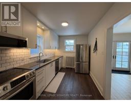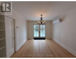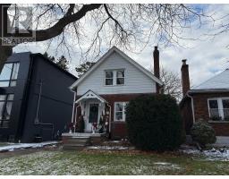 This charming 1 1/2-storey, two-bedroom home has been thoughtfully beautified by the owners, blending mid-century character with carefully considered updates. The home features hardwood flooring throughout the main and second floors and elegant wainscoting carried consistently throughout, creating a cohesive and timeless interior. The recently renovated kitchen is both functional and visually striking, equipped with stainless steel appliances and designed to complement the home's classic aesthetic. Architectural details include a non-operational Art Deco fireplace, original-style wall sconces, and select light fixtures that reflect a mid-century design sensibility, adding warmth and distinctive character throughout the living spaces. The home offers two well-proportioned bedrooms and one four-piece bathroom, maintaining comfort while respecting the home's original charm. Climate comfort is provided through radiant water heating throughout the home, offering consistent and efficient warmth, along with a wall-mounted air conditioning unit on the main floor and new window air conditioning units on the second floor. The basement features concrete flooring and an open-concept layout, providing flexible space suitable for a variety of uses such as storage, hobby areas, or informal workspaces.Outdoor living is a notable feature of this property. French doors from the dining room open onto a generous wooden deck, ideal for outdoor dining and relaxation. Both the front and backyard are professionally landscaped, offering privacy and a tranquil setting. A separate garage is available for storage, and the private driveway accommodates up to four vehicles, a rare and valuable feature. Situated in a quiet, tree-lined and picturesque neighbourhood, the home enjoys proximity to exceptional community amenities. A two-minute stroll leads to the lake and expansive green space, ideal for families and outdoor enjoyment. (id:47351)