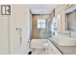 Welcome to this beautifully updated bungalow in one of Burlington's sought-after family-friendly neighbourhoods, just minutes from the lake, Burloak Waterfront Park, schools, and trails. Fresh curb appeal, smart app-controlled soffit lighting, a paved four-car driveway w/ no sidewalk, and a large 17' x 23' 1.5-car detached garage w/ new 50A panel (2025), hydraulic compressor system, loft storage, and excellent workshop/hobby potential. Inside, the home feels bright, modern, and move-in ready. The main level features new flooring and lighting (2025), a light-filled living and dining area, and an updated kitchen w/ stainless steel appliances and timeless tile backsplash. The spacious primary bedroom offers extensive closet space and ensuite privilege to the refreshed 4pc bath, w/ a second bedroom completing this level. The fully finished lower level (2024/2025) is ideal for multi-generational living, guests, or teens, w/ separate ground-level rear entrance, soundproofed ceilings, all new wiring, three wired smoke detectors, generous recreation space, new full-size egress windows, a wet bar that can be upgraded to a full kitchen, 3pc bath w/ walk-in shower, guest suite, laundry, and storage. Extensive upgrades provide comfort and peace of mind: full exterior foundation waterproofing w/ 25 yr warranty, upgraded attic insulation to R60, and a new energy-efficient heat pump HVAC system. Outside, enjoy the large fully fenced 80' x 100' lot, mature trees, shed, and newly renovated tiered wood deck (2025). A beautifully updated home that blends style, comfort, and flexibility in a prime Burlington location. (id:47351)