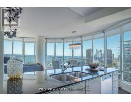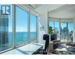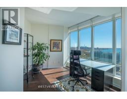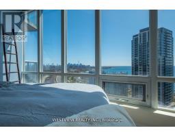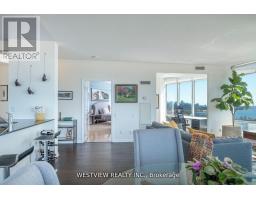 Good morning, Good afternoon & Good evening! That is what you can expect from this sun drenched two bedroom plus den waterfront gem, two floors from the top. Spanning over 1100 sqft of luxurious living space, offering very rare 270 degrees of stunning panoramic views. From the picturesque downtown skyline extending to Humber Bay, Grenadier pond and beyond. Enjoy both the colourful sunrises & sunsets along with watching planes come and go from both airports at a distance. All of which can be managed with your custom automated blinds. This is a Beautifully appointed condo, with post card views from all principal rooms. The modern kitchen features a large breakfast bar that overlooks the spacious living area & bright blue water of the lake. The bright den (potential office space) fit for any executive, features wrap around windows overlooking the Toronto downtown city-skyline as well as the lake to the west. Living in "Windermere By The Lake" you will be within steps to the miles of waterfront walking/ biking paths, High Park, Roncesvalles, Bloor West village, shopping, public transit & many more amenities. New Electric vehicle charging station has also been installed for your parking spot, for your convenience, storage locker on 2nd floor. You will look forward to coming home here! (id:47351)