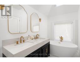 Welcome to this fabulous 4+1 bed, 4.5 bath, two-storey home, thoughtfully designed with a unique layout & loaded with high-end finishes throughout, offering style, functionality & smart living. Located in a family-friendly neighborhood just steps from Dieppe Park & within one of the city's most desirable school districts. Step inside to discover gorgeous hardwood floors, wall paneling, complemented with skylights & soaring ceilings. The main flr features a fabulous layout with a spacious foyer, a few steps up, you will find the formal living & dining room offering an inviting space with full wall paneling, b/i bar display, and integrated ceiling speakers. From there, three steps lead down to the show-stopping kitchen & family rm with a massive 4-panel glass door that opens directly to the private backyard. A magazine-worthy kitchen featuring a striking porcelain island, matching porcelain countertops & backsplash, & a top-of-the-line appliances. The family room is equally impressive with a sleek fireplace framed by a full porcelain wall, custom wood wall panels & b/i speakers. A conveniently located powder room completes the main living area. Upstairs, a large skylight fills the hallway with natural light, leading to four bedrooms, two with their own private ensuites, plus an additional 3PC bath. A conveniently located laundry area is tucked into a custom-built closet on this level. The primary bedroom offers three b/i closets, a 5PC ensuite, sound system, and sliding door to a private balcony overlooking the backyard. The lower level offers extra living space featuring high ceilings, garage access, an extra bedroom, a 3PC bath, a combined kitchen/living area, laundry & W/O to the backyard. Step outside to a beautifully landscaped & fully fenced backyard complete with a large deck with glass railing, interlock patio, garden shed, BBQ gas hookup, & an irrigation system. This Masterpiece Checks All The Boxes! (id:47351)