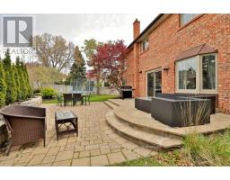 Wonderfully updated/renovated 5 + 1 bedroom home with professionally finished basement on a large private lot and very desirable court in College Park. Walk to schools, Oxford Park and wooded ravine trails along 16 Mile Creek. Close to Sheridan College, Oakville Place Mall, Uptown Core, restaurants, GO Train Station and highways. Great curb appeal with upgraded brick and stucco exterior, interlocking stone walkway with lush gardens and towering mature trees. Beautifully maintained home with numerous updates throughout including travertine floor tiles, dark stained curved oak staircase with contrasting white pickets and upgraded carpet runner, newer upgraded windows and patio doors with pewter mullions, exterior doors, crown mouldings, hardwood floors on 2 levels, deep baseboards and upgraded casings, numerous pot lights, upgraded light fixtures, updated/renovated bathrooms, renovated kitchen and much more! Gourmet kitchen with extensive vanilla cabinetry, dark stained island with an extended custom breakfast bar, luxurious sparkling quartz counters, and top quality stainless steel appliances. Spacious master retreat with renovated 4-piece ensuite. Four additional bedrooms. Professionally finished lower level with an extra-large recreation with quality wainscotting, gas fireplace, pot lights and custom wet bar. Large 6th bedroom/office/gym. (id:47351)