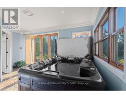 Experience Elevated Living at this Spectacular North Burlington Masterpiece in an Exclusive Enclave of Prestigious Estates. Set on a serene 2.5-acre lot, this luxurious home offers approx. 8,700 SF of exquisitely finished living space, where sophistication meets comfort and innovation. Designed for discerning buyers, this 4-bedroom, 7-bathroom residence delivers the ultimate lifestyle. Gourmet custom kitchen by Gravelle, with extensive solid wood cabinetry, granite counters, hidden doors to large pantry and high-end SS appliances. The walk-out basement is a next-level entertainment hub with Star Wars Sci-Fi theme. Featuring a cutting-edge games room, a dedicated home theatre with immersive 7.1 Dolby surround sound, 12' screen and starlight ceiling. Including flexible space that could easily serve as a 5th bedroom, complete with generous storage. Step outside to a peaceful retreat gather around the stone fire pit or take a scenic stroll along the nearby Bruce Trail. Despite the private, nature-filled setting, you're only minutes from the schools and amenities of Burlington, blending secluded luxury with urban convenience. This remarkable home defines upscale living. Whether you're hosting grand celebrations or enjoying quiet moments, this is where modern luxury meets timeless tranquility. Please click on more information for all luxury features and all inclusions and click on more photos for floorplans. 10+++ (id:47351)